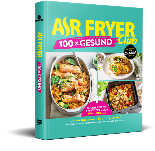 Unser exklusiver ZauberTopf für Air Fryer Einstiegs-Guide für gesundes Kochen zeigt dir, wie du schonend mit der Heißluftfritteuse kochst. Dich erwarten 20 neue Rezepte, außerdem zeigen wir dir, wie du andere Rezepte ganz leicht für den Airfryer umwandelst.