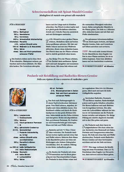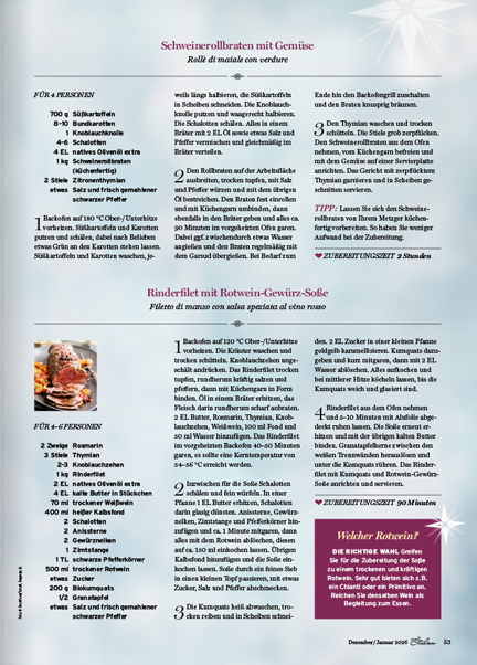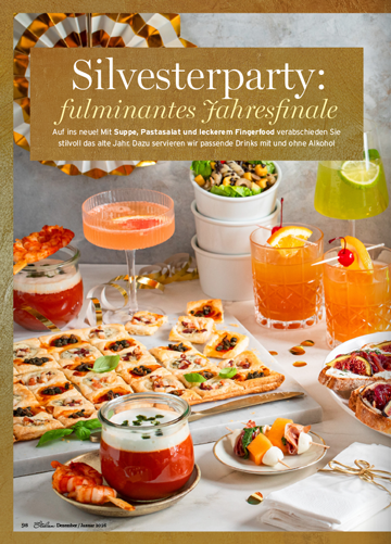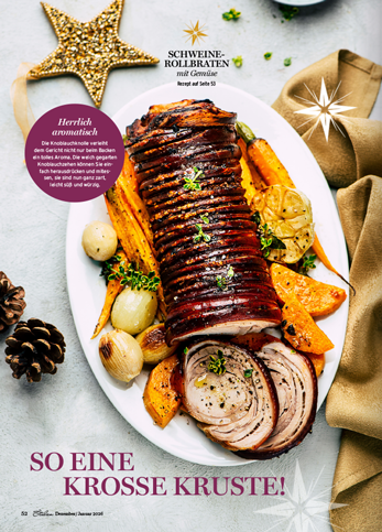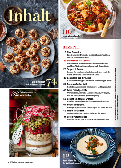 Unsere zarten Braten sind ebenfalls perfekt geeignet, wenn Sie Gäste empfangen. Und wenn Sie in diesem Jahr eine Silvesterparty planen, finden Sie die besten Ideen für Fingerfood mit passenden Drinks zum Anstoßen. Abseits der Feiertage locken herzhafte Gerichte wie unsere Pastakreationen mit unterschiedlichen Kohlsorten, gesunde Leckereien mit Orangen, vielfältige Linsengerichte und leckere wärmende Cremesuppen. Und weil in der Vorweihnachtszeit süßes Gebäck nicht fehlen darf, stellen wir Ihnen unsere Lieblingsplätzchen vor.