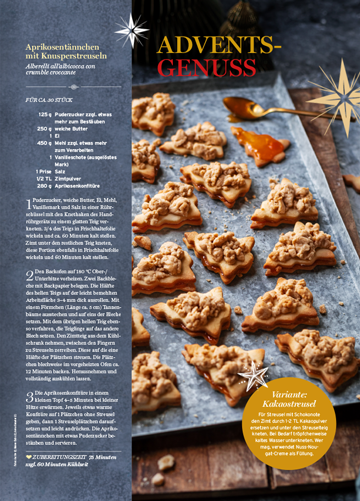 Lassen Sie sich von unseren köstlichen Drei-Gänge-Menüs inspirieren und versüßen Sie sich die Adventszeit mit verführerischen neuen Plätzchenhits. Genießen Sie außerdem herzhafte Klassiker wie Pasta mit Kohl, heiße Cremesuppen und zarte Braten, die Ihre Gäste begeistern werden.