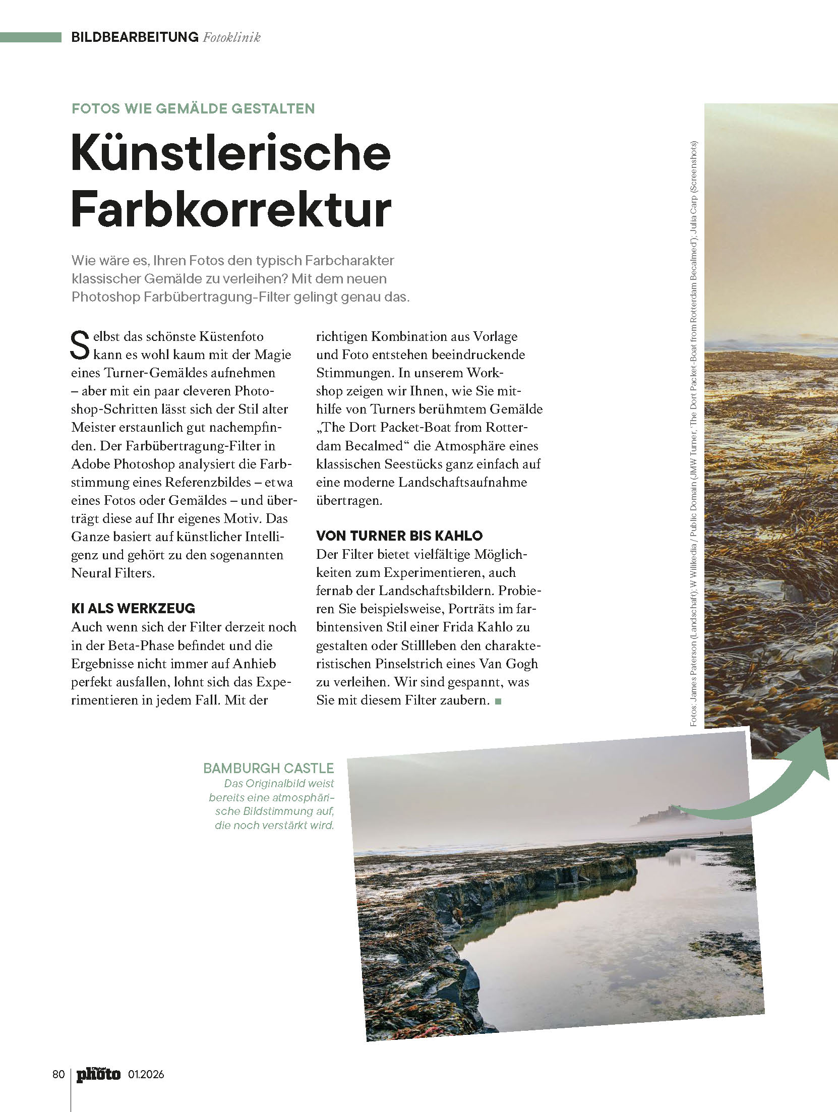 Entdecken Sie die neue DigitalPHOTO 01/2026 – praxisnah, informativ, inspirierend! Im großen Perspektiven-Spezial lernen Sie, wie kreative Bildkomposition, Blickführung und standpunktbezogene Gestaltung Ihre Fotos spürbar... Weiterlesen