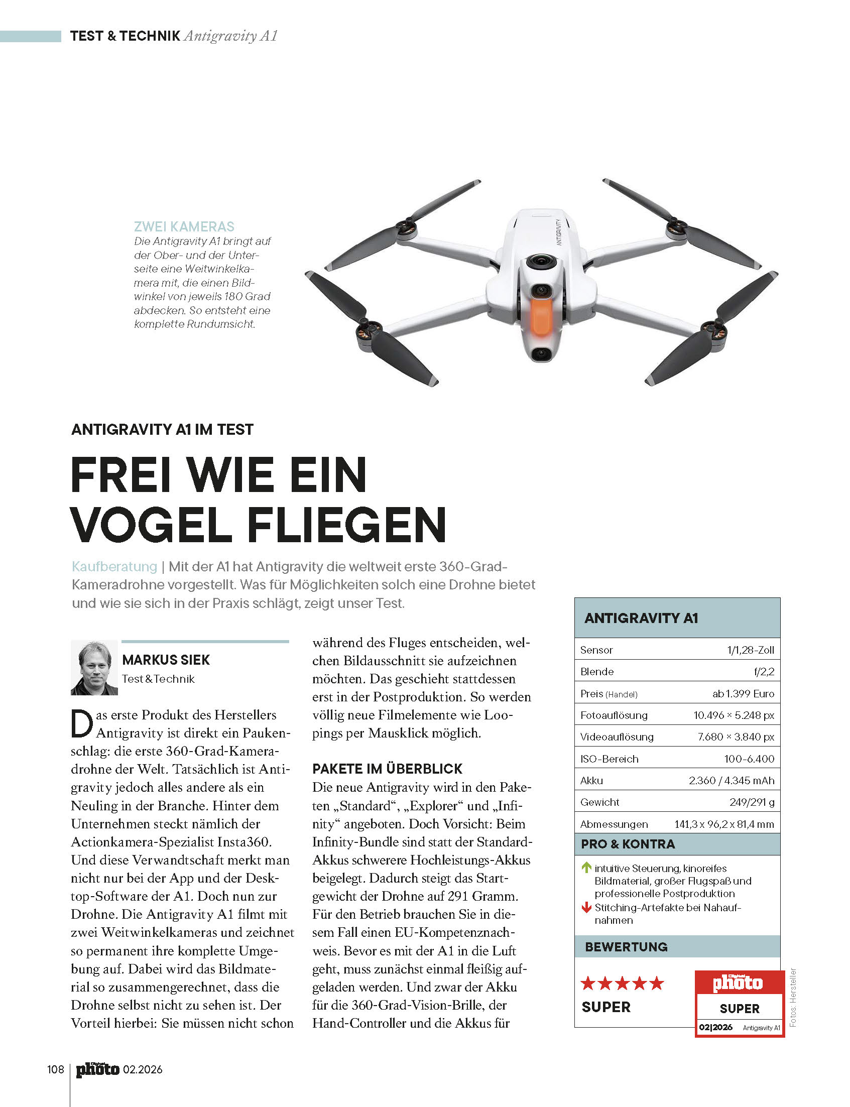 Im großen Test & Technik-Teil lesen Sie unseren umfassenden Labor- und Praxistest zur Alpha 9II, den Praxistest zur ultrakompakten Alpha 7C und alles zu den neuesten Objektive für Sony Fotografen. Apropos Objektive: In unserer großen Objektivübersicht auf 10 (!) Seiten finden Sie jetzt noch mehr starke Optiken für Ihre Sony. Wie gewohnt finden Sie auch unsere Kaufberatung im Heft, die Ihnen den Weg zu „Ihrer“ Sony erleichtern wird, sowie praktisches Zubehör von Gimbals bis zu Monitoren.