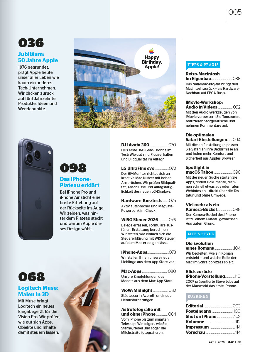 das Fachmagazin Mac Life liefert topaktuelle News, fundierte Hintergrundberichte, handverlesene Tricks und ausführliche Tests zu allen Themen rund um Mac, iPhone, iPad und Co.