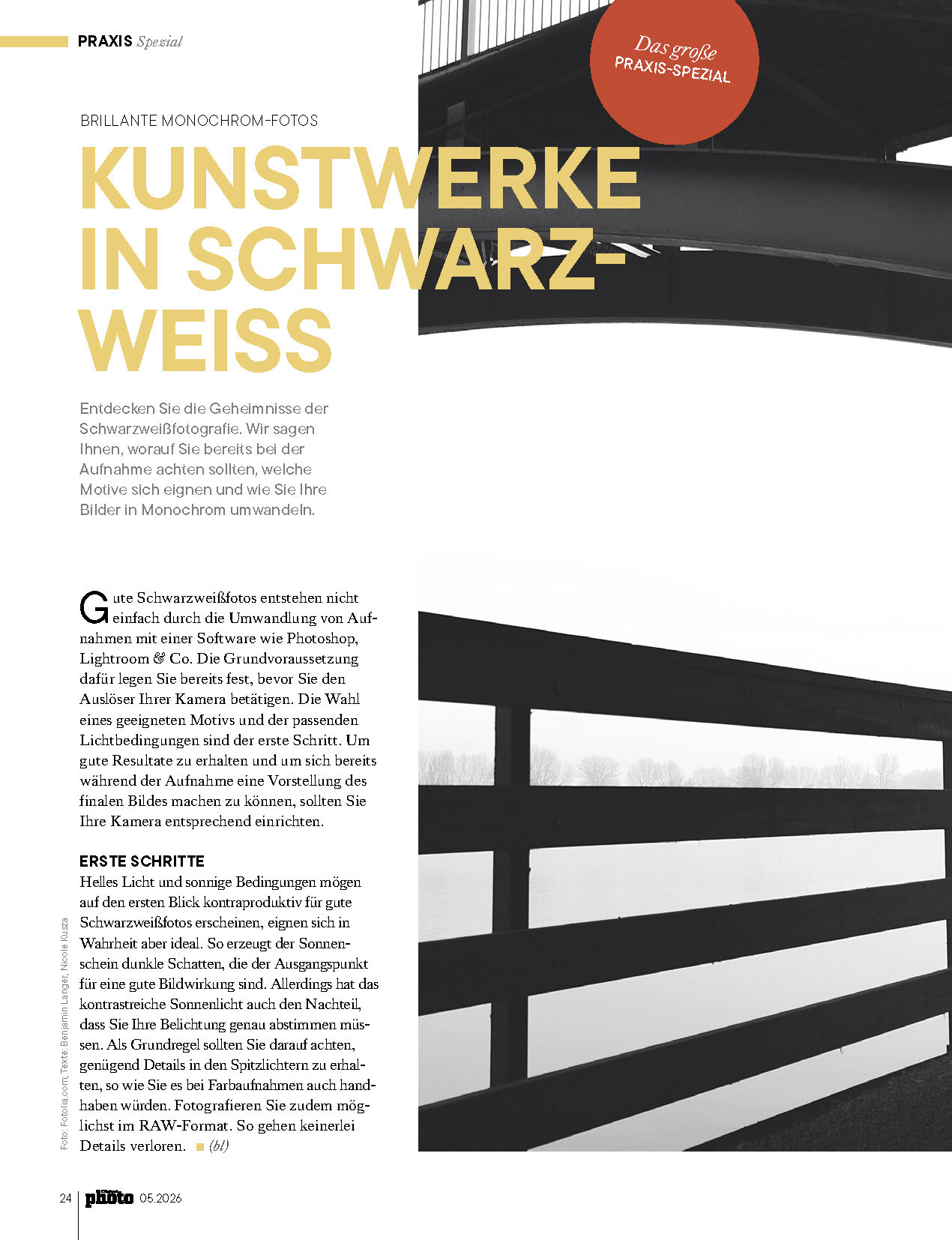 Das große Schwarzweiß-Spezial (24 Seiten): Von der perfekten Motivwahl für monochrome Aufnahmen bis hin zu 10 direkt umsetzbaren Praxis-Tipps für atemberaubende Ergebnisse.