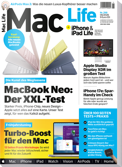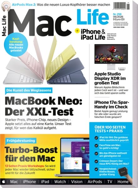 In der neuesten Ausgabe der Mac Life 06/2026 nehmen wir das mutigste Apple-Projekt des Jahres unter die Lupe: Das MacBook Neo. Mit seinem völlig neuen Design und der Integration eines iPhone-Chips stellt Apple die Weichen für die nächste Generation mobiler Computer. Erfahren Sie in unserem XXL-Test, ob das radikale "Weglassen" von Altbewährtem aufgeht oder ob hier am falschen Ende gespart wurde.