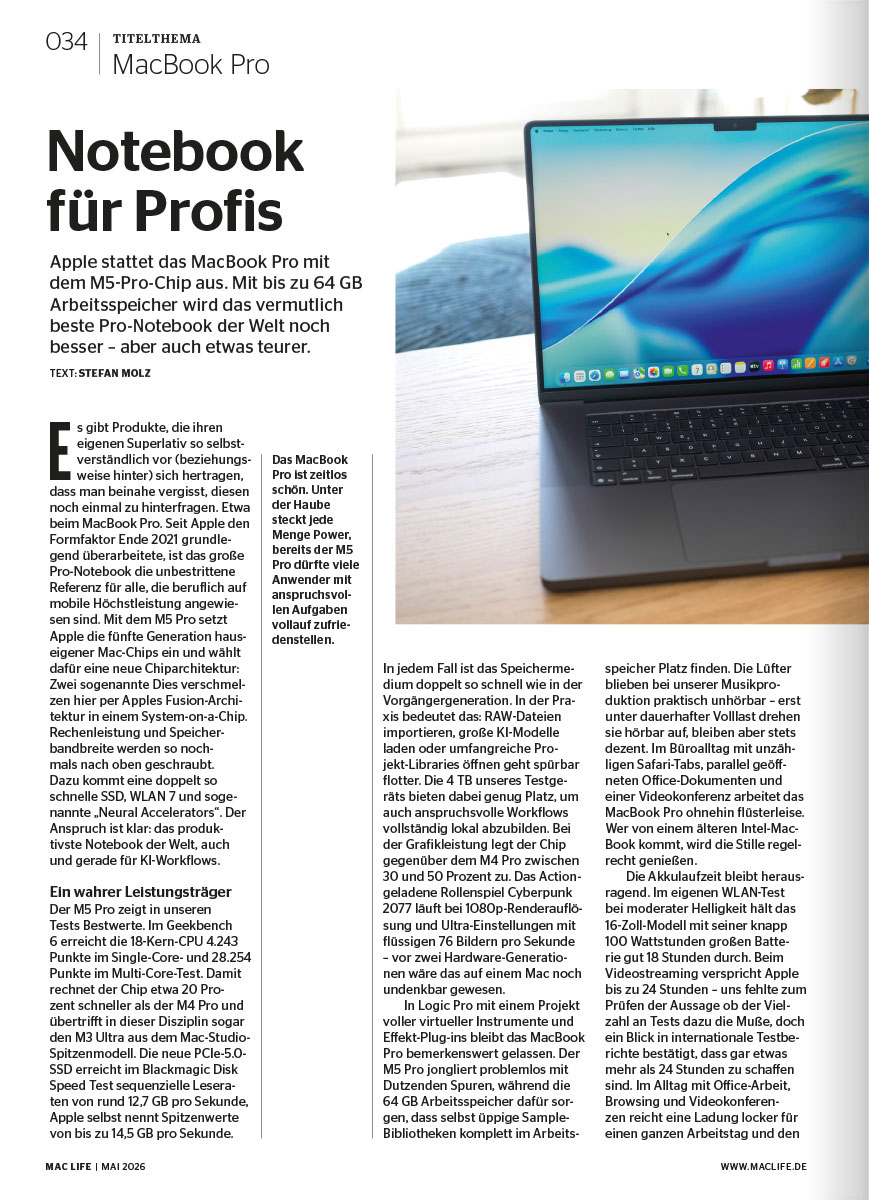 das Fachmagazin Mac Life liefert topaktuelle News, fundierte Hintergrundberichte, handverlesene Tricks und ausführliche Tests zu allen Themen rund um Mac, iPhone, iPad und Co.