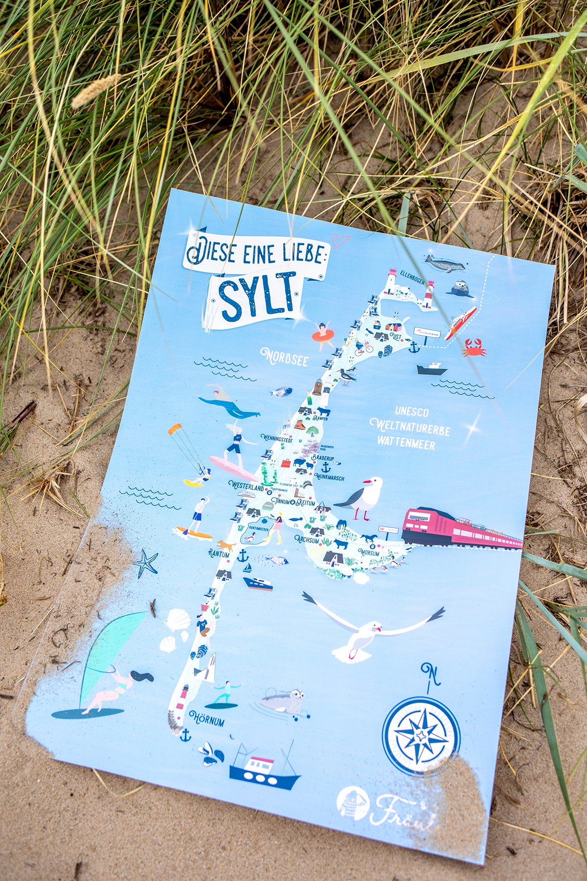Liebevoll illustrierte Syltkarte als hochwertiges Poster für Ihr Zuhause oder zum Verschenken an Inselliebhaber:innen.