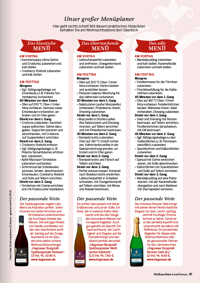 Festessen: Entdecken Sie unsere vielfältigen Drei-Gänge-Menüs, die Sie nach Belieben kombinieren können, sowie praktische Tipps und Tricks für entspanntes Gastgeben.
