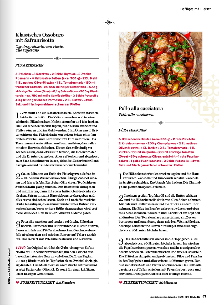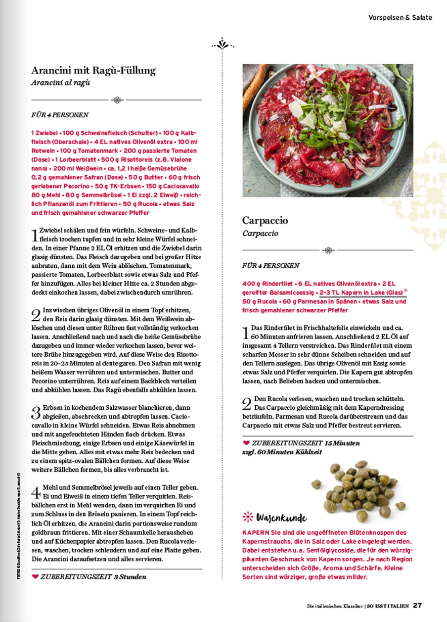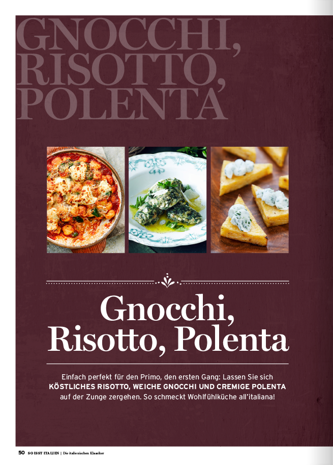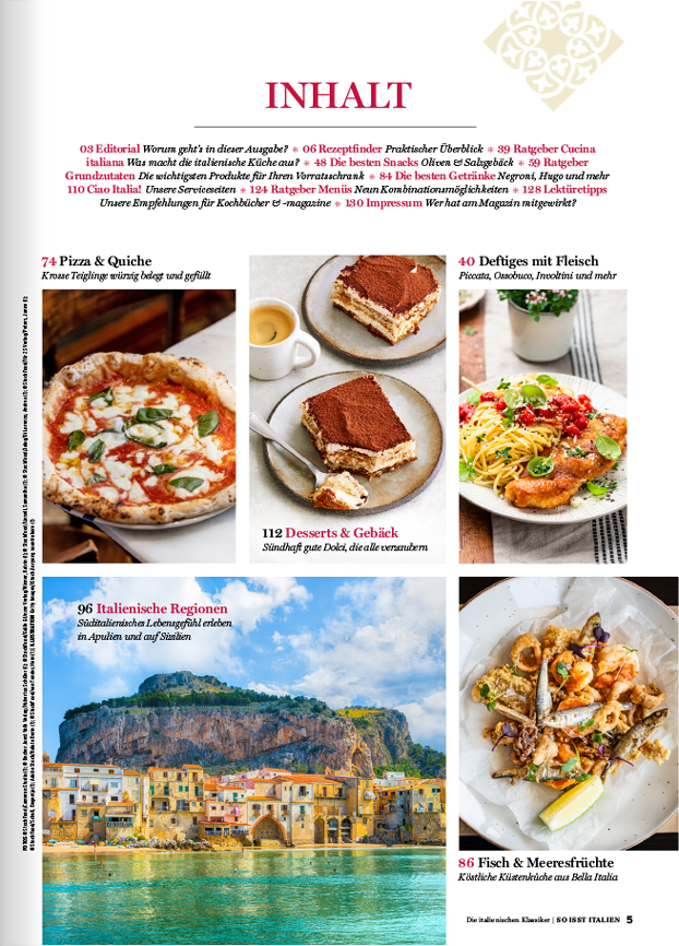 das Koch- und Livestylemagazin rund um das italienische Lebensgefühl greift alle zwei Monate alte Traditionen auf, zeigt die neuesten kulinarischen Facetten der italienischen Esskultur und stellt die verschiedenen Regionen Italiens vor.