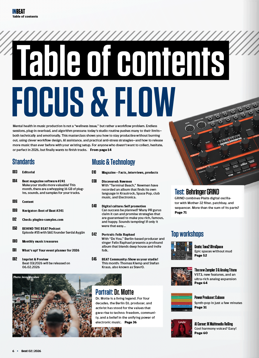 Release more music than ever before! Our FOCUS & FLOW Masterclass proves that mental health in music production isn't just a "wellness issue"—it’s a workflow problem. If endless sessions, plug-in overload, and algorithm pressure are pushing you to your limits, it is time for a change.