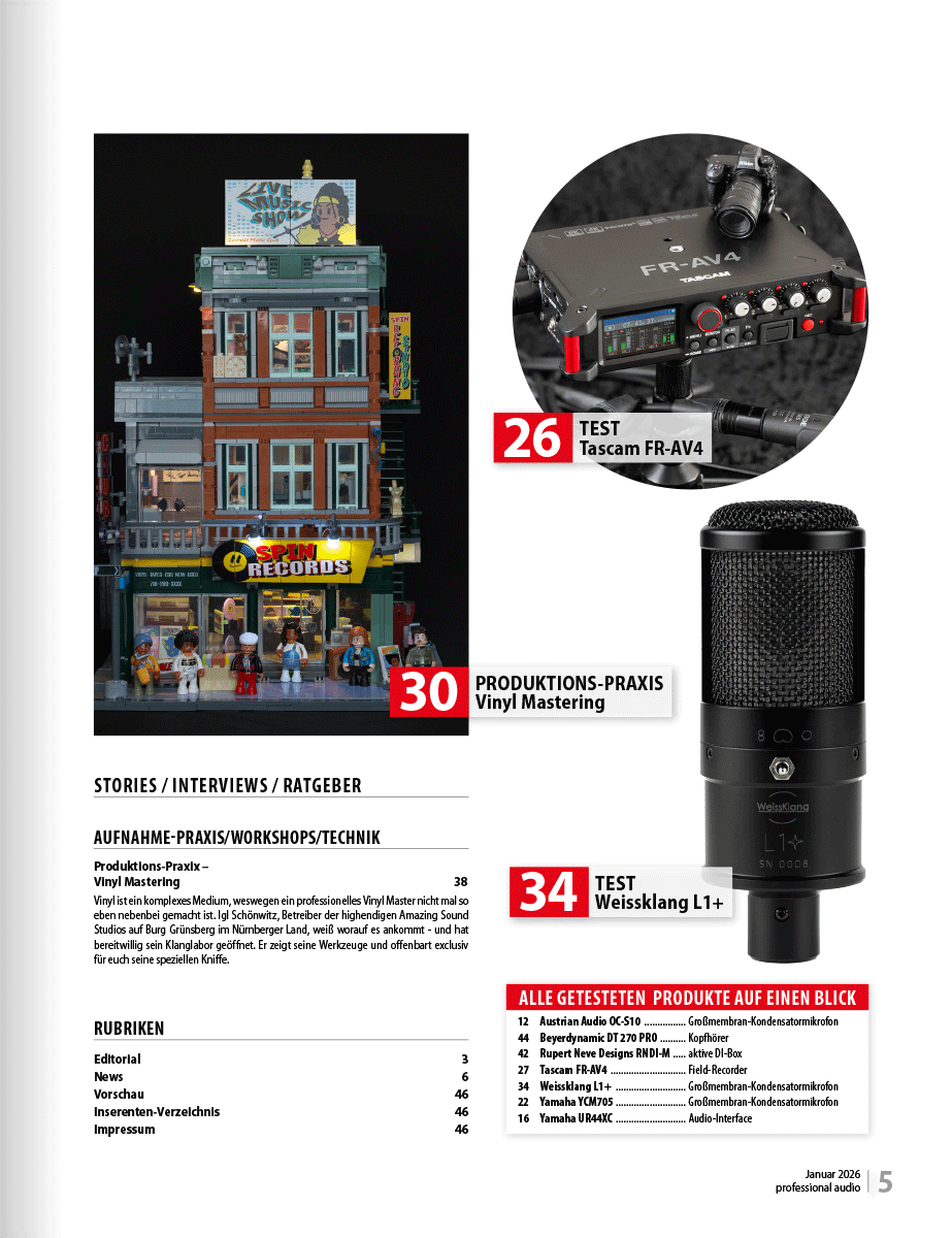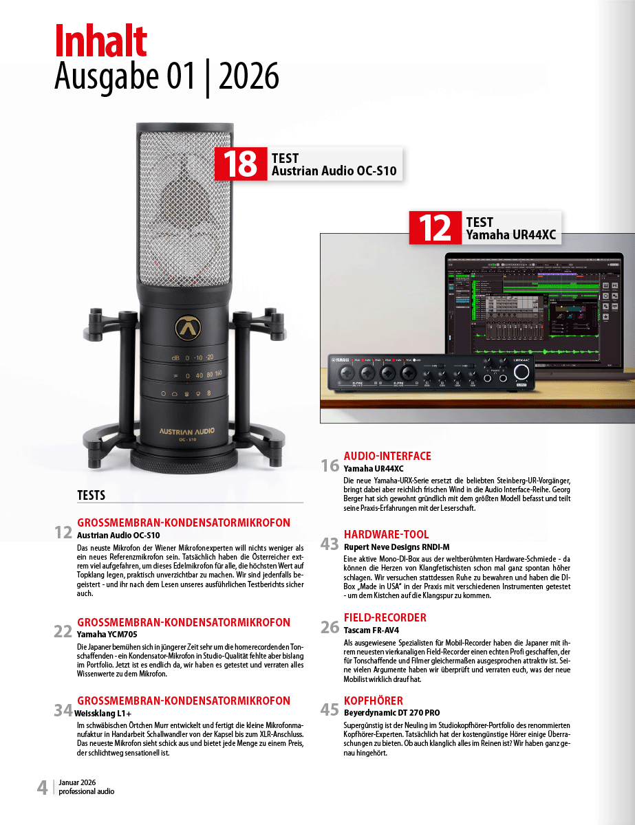 Die erste Ausgabe fürs nächste Jahr 2026 erscheint noch vor den großen Feiertagen 2025 und bietet Euch superspannende Themen: Wir haben diesmal ein inoffizielles Mikrofonspecial im Heft und uns mit tollen Schallwandlern befasst.