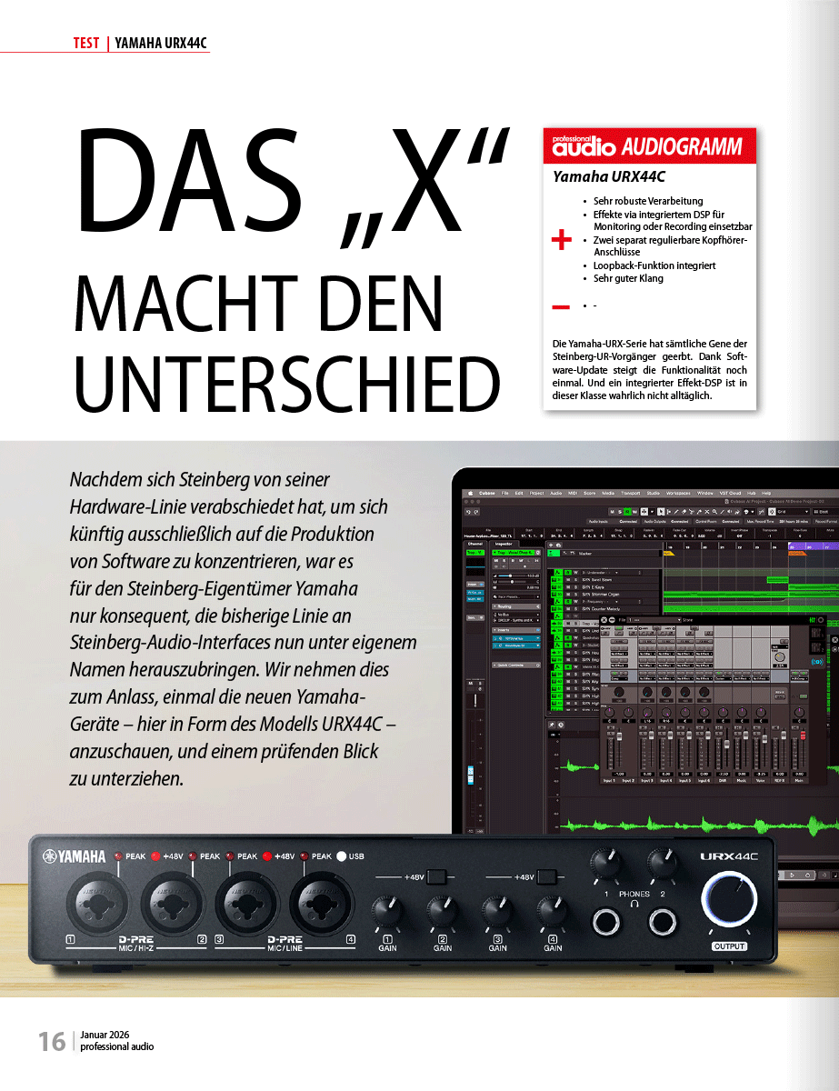 Wem dieses Audio-Interface bekannt vorkommt, hat ein gutes Gedächtnis. Denn früher prangte mal „Steinberg“ auf seinem Gehäuse. Dass Yamaha schon immer der Hersteller der beliebten Steinberg-Audiointerfaces war, ist weniger bekannt. Nun, die Japaner haben die Serie überarbeitet und vereinigen Bewährtes und Neues. Der ausführliche Tests unser