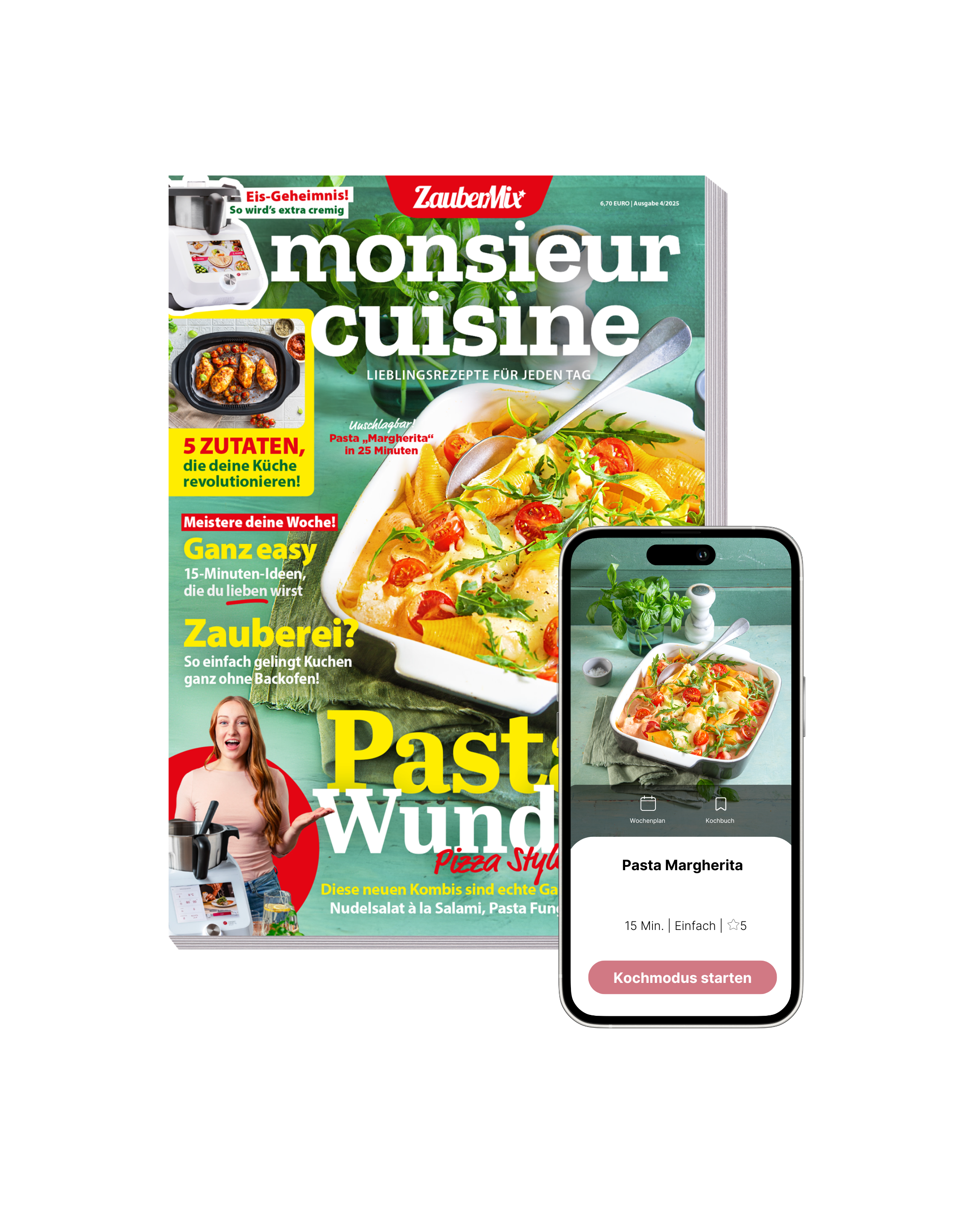 Diese Ausgabe bringt über 85 neue Lieblingsrezepte auf den Tisch – perfekt für warme Tage, spontane Gäste und entspannte Abende auf deiner Terrasse. Von blitzschnellen 5-Zutaten-Gerichten bis hin zu cremigen No-Bake-Kuchen, Pasta à la Pizza, Mocktails und coolen Desserts: Mit dem Monsi gelingen alle Rezepte im Handumdrehen.
