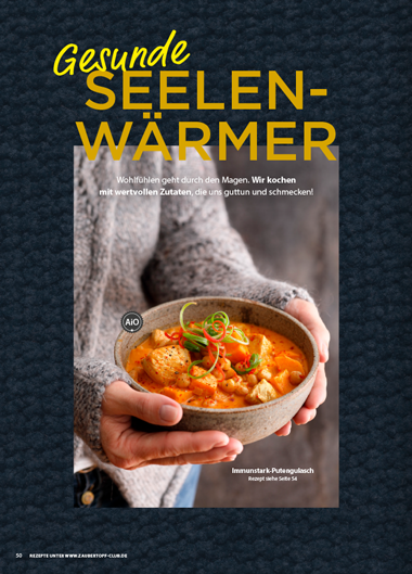 Die neue Ausgabe des ZauberTopf Clubs bietet dir auf 116 Seiten einfache, gesunde Mahlzeiten, die deinen Alltag entlasten. Erfahre, wie du aus saisonalen Grundzutaten preiswerte Basics und Hauptgerichte zauberst, die jede Fertigpackung schlagen.